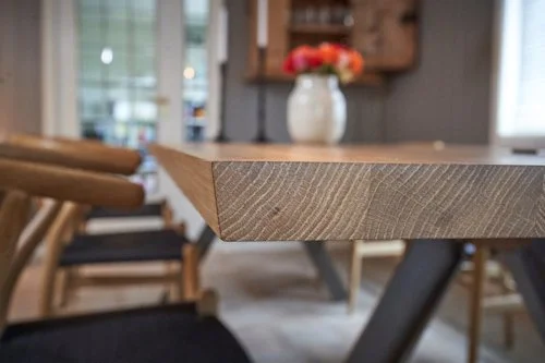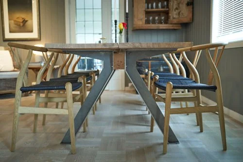 Bord i Eik på råstål ben levert til leilighet på Majorstuen. 200x100cm med Fjøl på 90 cm.
