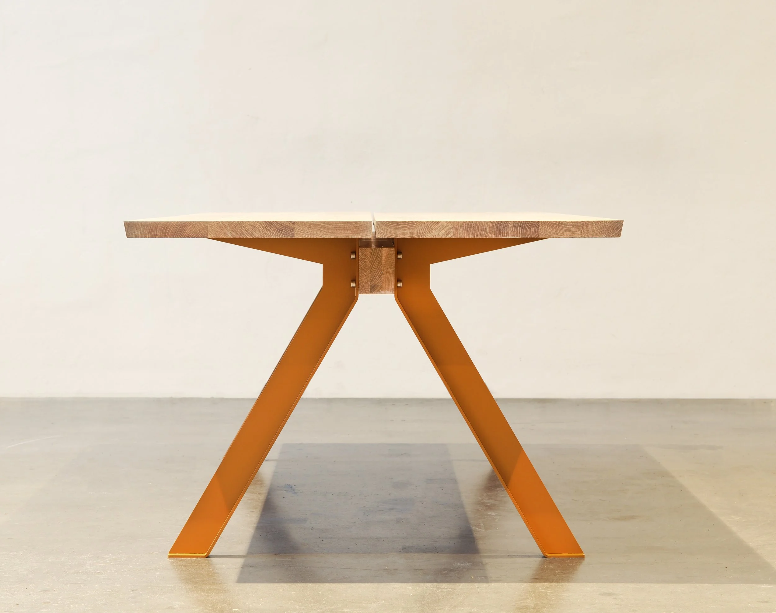 Designet med utgangspunkt i gamle norske bondebord. De hadde en midtbjelke som bandt sammen en benbukk i hver ende. Som oftest med trekiler. Bordplata besto av flere planker bundet sammen av en labank på tvers. Vi har modernisert uttrykket, og erstattet trekiler og treben med metallskruer og ben i stål.